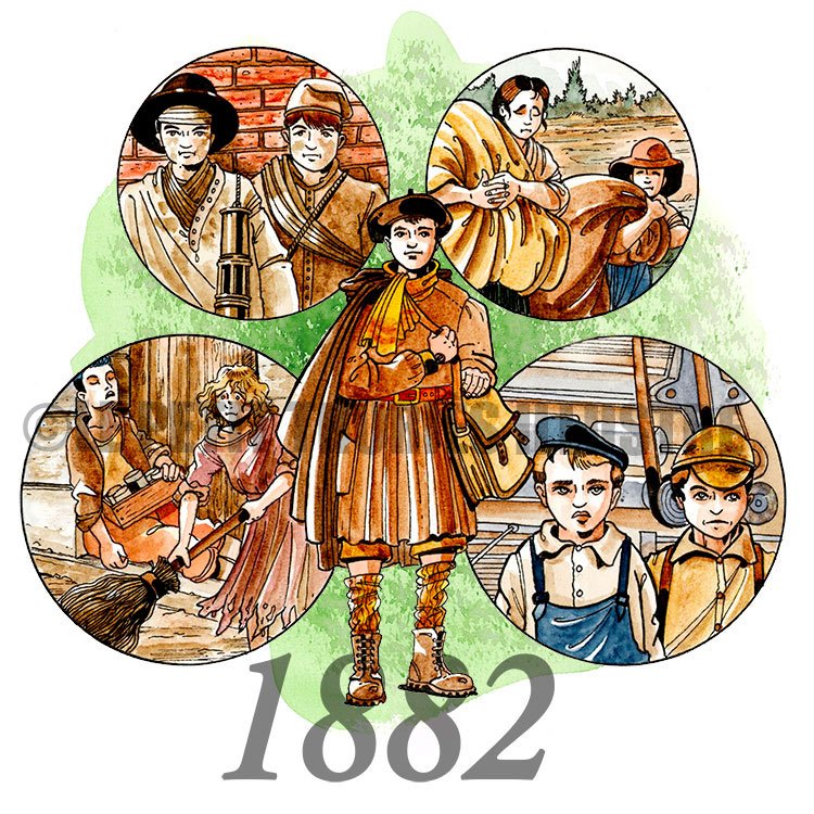 C’est en 1841 qu’une première loi interdit le travail des enfants de moins de 8 ans à l’usine, mais il faudra encore du temps avant que celle-ci ne soit respectée.
